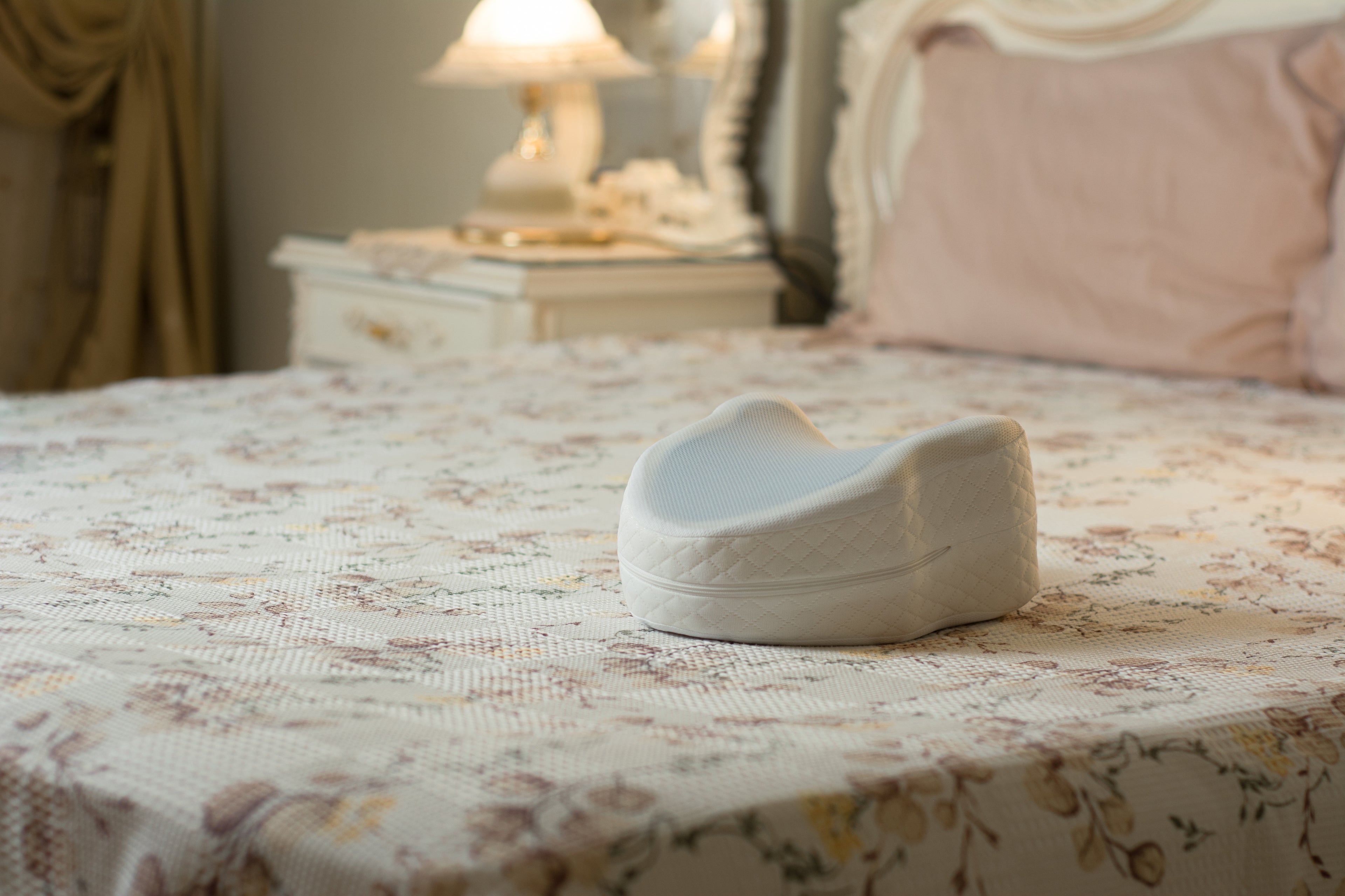 A knee pillow designed to support your spine and relieve pressure while you sleep.